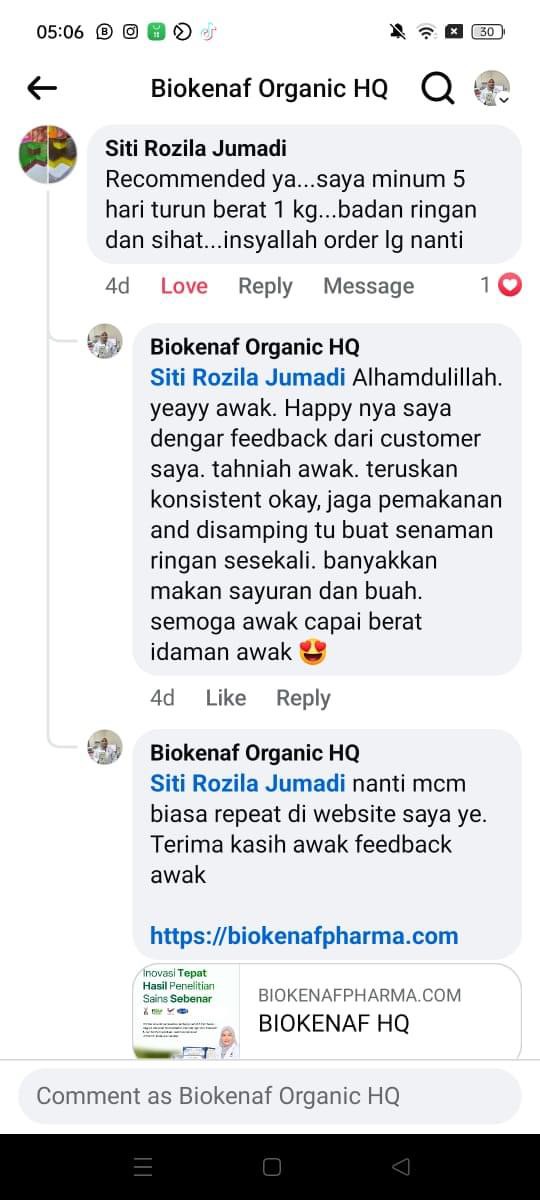 Kesan Dialami Pengguna Biokenaf Seawal 28 Hari Melalui Temubual Whatsapp