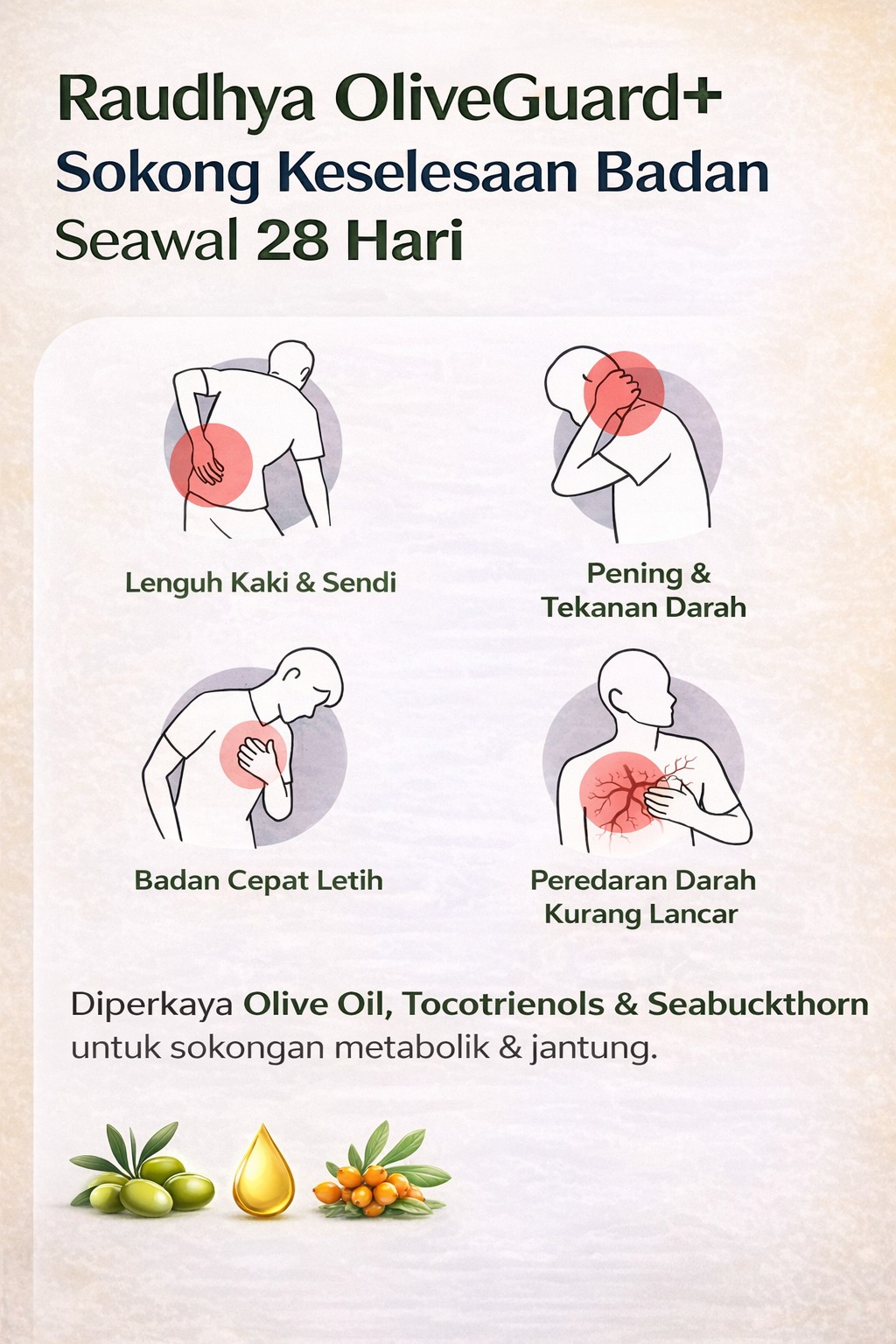 OliveGuard diformulasi untuk bantu rawat masalah diatas.